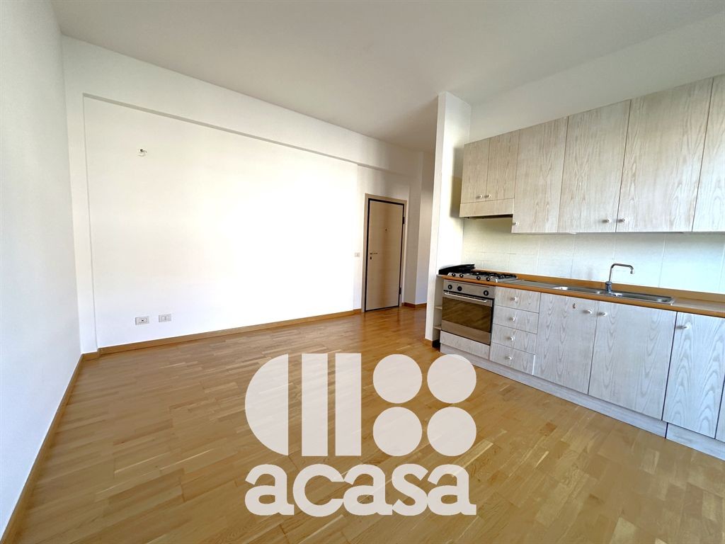 Entrando sulla destra troviamo una zona living con angolo cottura e balcone.