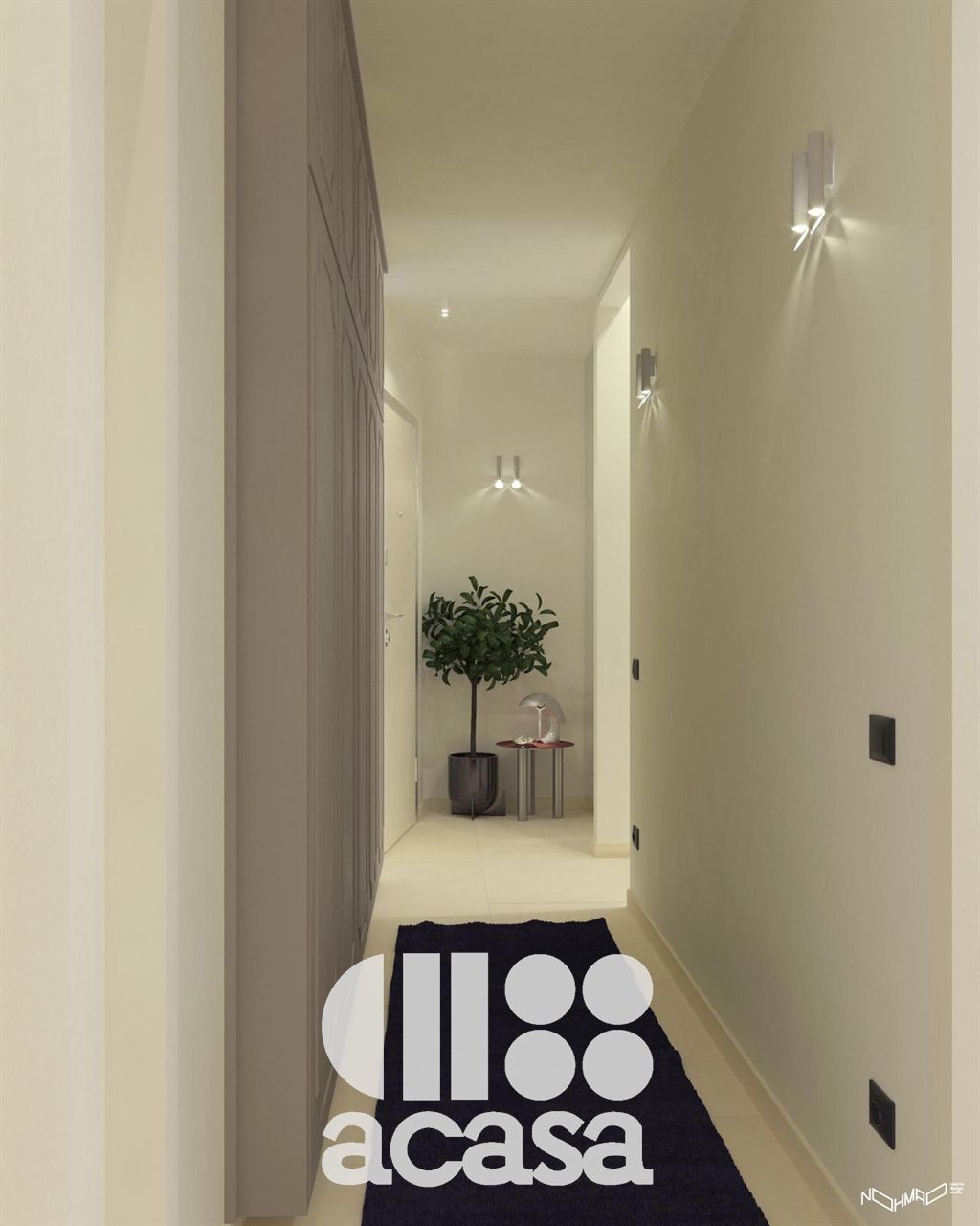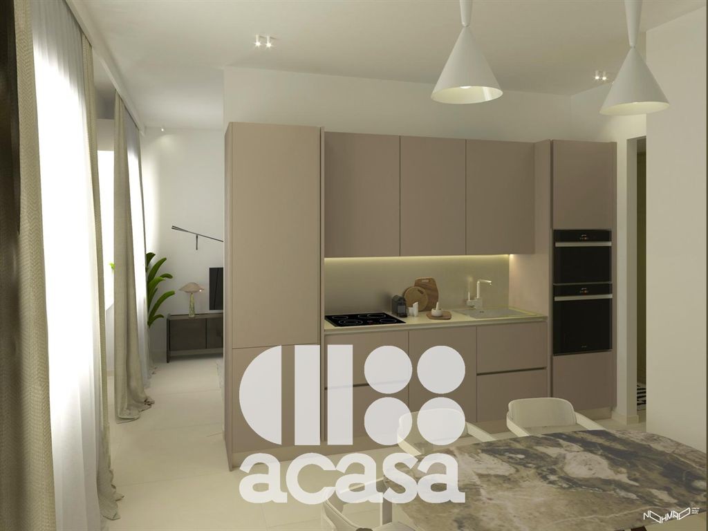 Il progetto di ristrutturazione prevede un layout moderno e funzionale: un pratico ingresso con guardaroba, una zona giorno che unisce soggiorno e cucina, ideale per la convivialità. Avrai a disposizione due camere da letto, un corridoio ottimizzato con armadio a muro e cabina armadio, doppi servizi con doccia e un utile ripostiglio.
