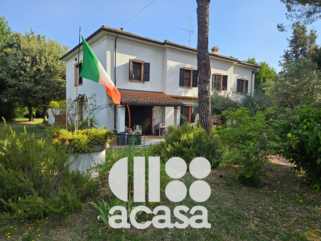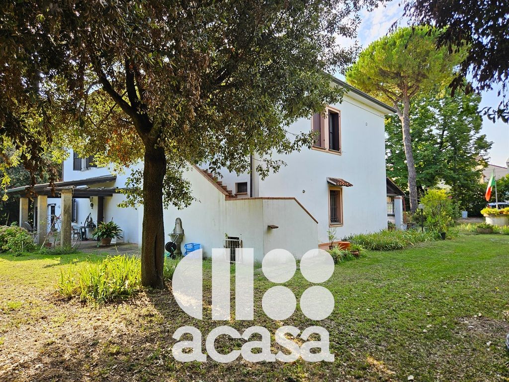 Cesena lato mare, è disponibile una villa indipendente immersa in un giardino privato di circa 2.000 mq. L'immobile, sebbene un'unica struttura, è elegantemente suddiviso in due appartamenti indipendenti, offrendo flessibilità e privacy.