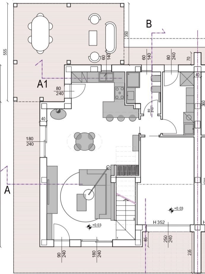 La costruzione attualmente in corso è realizzata in edilizia tradizionale: strutture in cemento armato, tamponamento in laterizio tipo Poroton, cappotto termico in Eps e tetto in legno lamellare a vista, ventilato e coibentato per ottenere una classe energetica A4.